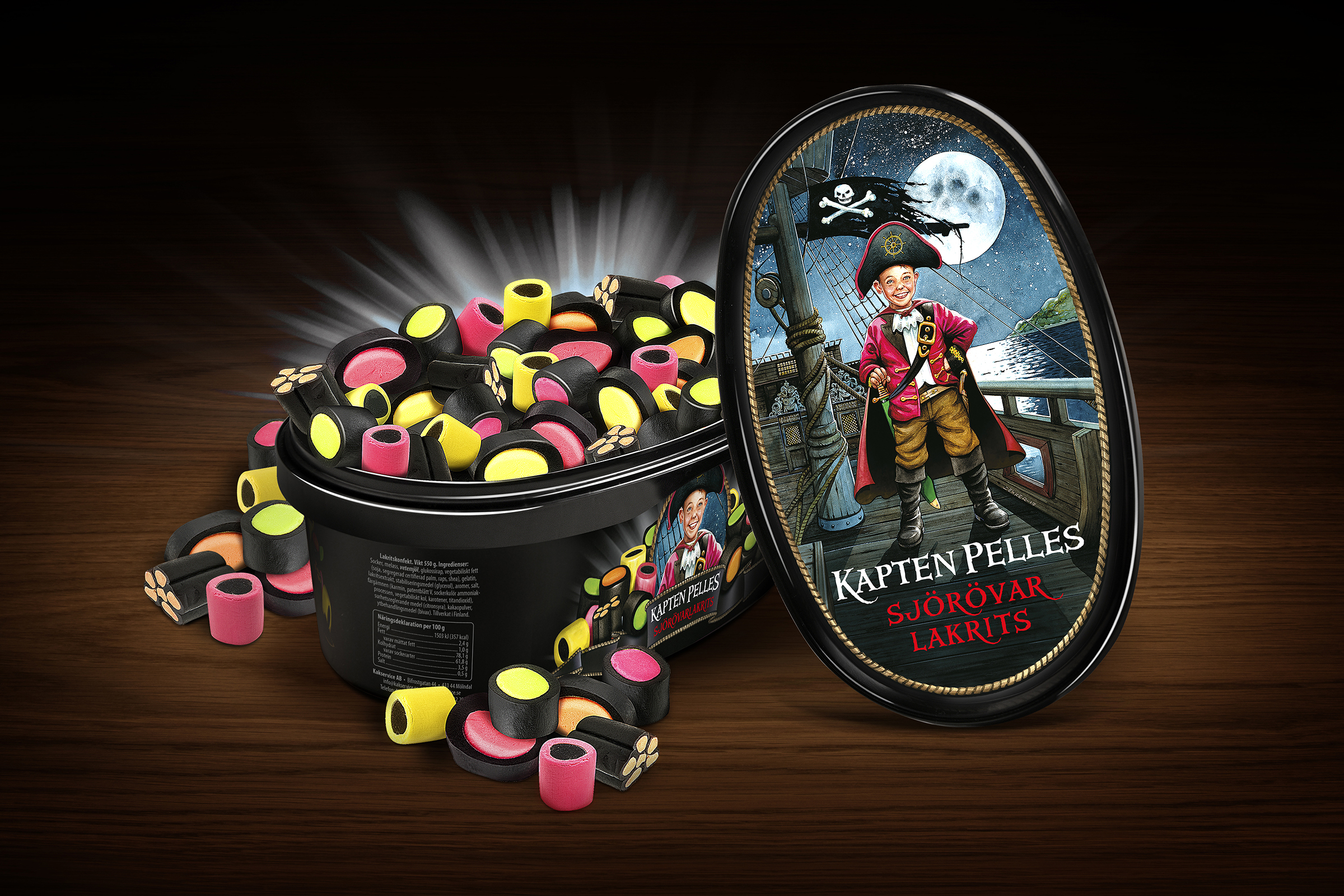 God sötlakrits fylld med smak av olika frukter. Burken innehåller riktigt mycket, så du lätt kan dela med dig. Kapten Pelles Sjörövarlakrits är en godisblandning för både gamla och unga busfrön.